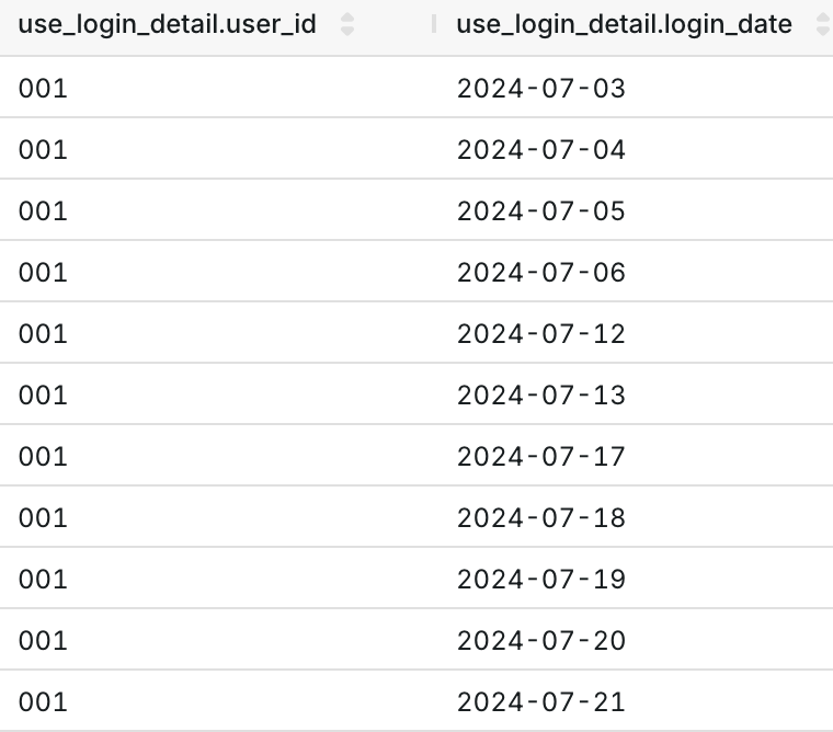 1)按照user_id, login_date 排序,保证同一个用户的登录日期是升序的