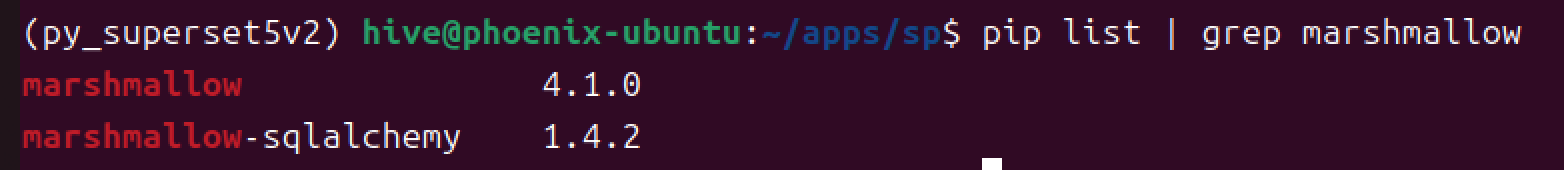 当前marshmallow版本为:4.1.0,marshmallow版本与 Superset 5.x 不兼容。marshmallow 4.x 对部分 API 进行了重构,移除了 minLength 等参数(或调整了参数名称),而 Superset 5.x 的代码仍然依赖 marshmallow 3.x 的语法,因此会出现 unexpected keyword argument 'minLength' 错误。
