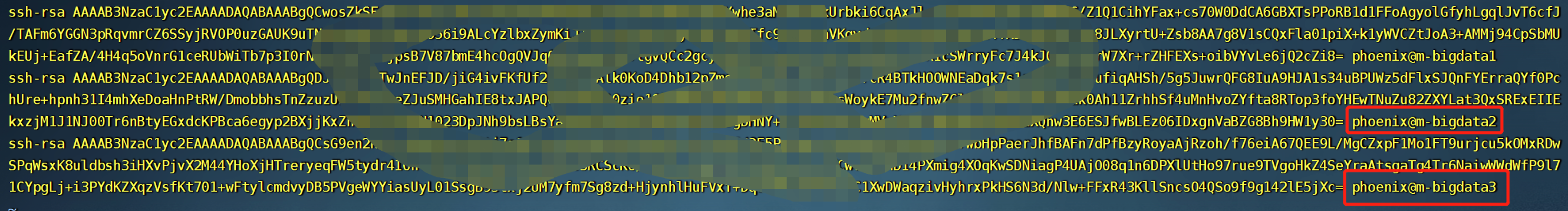 (也可以使用:ssh-copy-id -i ~/.ssh/id_rsa.pub phoenix@m-bigdata1)