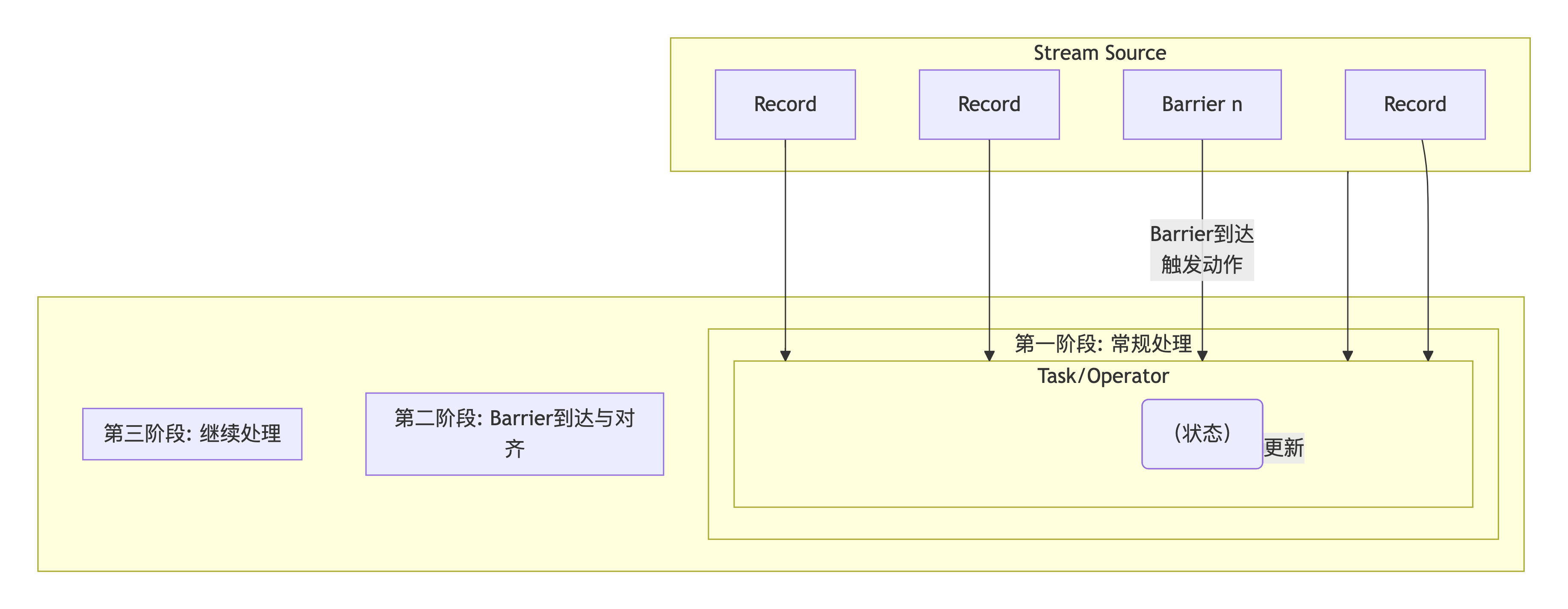 它通过*对齐机制**,确保了所有算子在同一个逻辑时间点保存状态,从而实现了**精确一次**的容错语义。