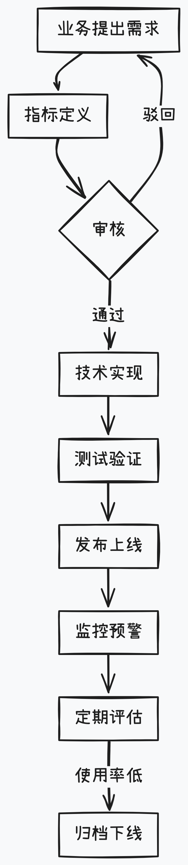 归档下线需要通知指标需求方,需求方确认后即可归档。